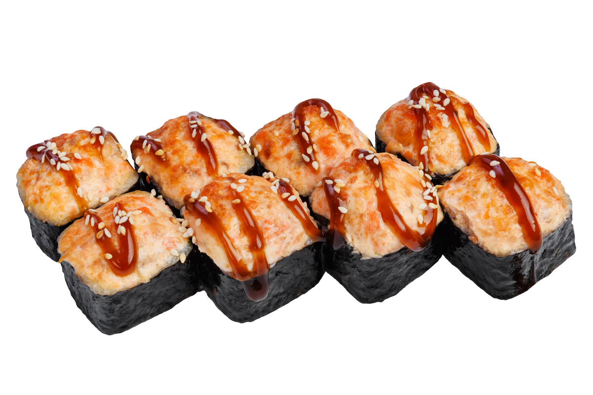 Чикен Лава (Курица терияки, Помидор, Тамаго, Лава соус, Кунжут)